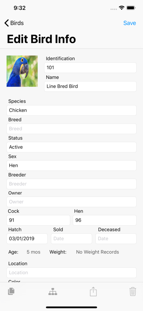 With the birdBreeder app, now you can record and reference your data while holding your birds in front of you, no need to be tied to a computer. Record health records for each bird and quickly find out the last time medication was administered or what tests had been conducted. Easily record data on every incubation or finances and analyze how the outcomes are trending. Simply, save time and make better decisions for your birds and your breeding program. I may not care about capturing the same data as the next person but I certainly would not want to lose the data I have already entered, so custom data field capture and database backup is built into the app. I built this app to use it personally and as I do I am constantly looking for ways to improve it, by making data easier to capture, more informative and more readily available.