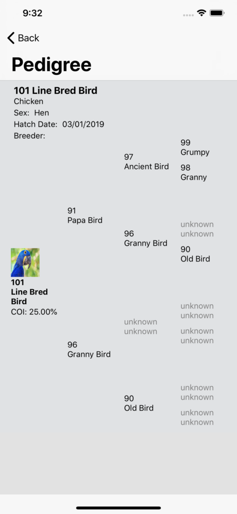 - Support Pedigree status added to include birds in pedigree that are not owned by you