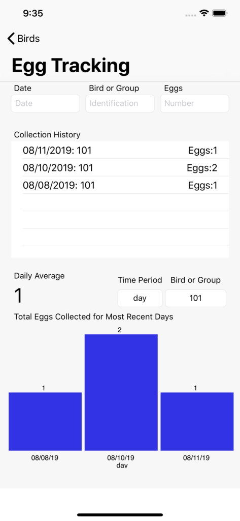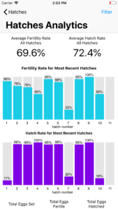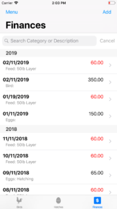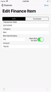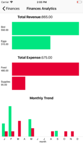 - Updated interface. The interface has been cleaned up so that you can easily see and access the three main areas of the app (birds, hatches, and finances) and can get utilize the slide out menu to access more in each section including analytics and settings.