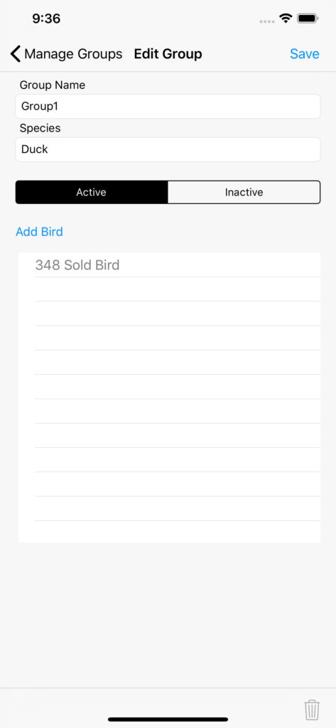 - Create and manage groups of birds for use in hatches where multiple birds are potential parents